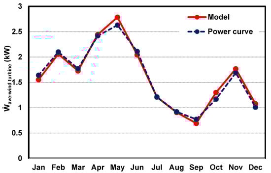 The wind turbine model is validated by comparing the evaluated monthly average output of wind turbines with the power curve given on the manufacturer webpage. Figure 3 shows the results of that comparison, with a mean deviation of 3.9%.