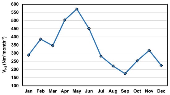 As the voltage efficiency of the PEM is assumed to be 72%, an operational voltage of 1.74 V is achieved. The mass flow rate of the produced hydrogen can be expressed as [,]: