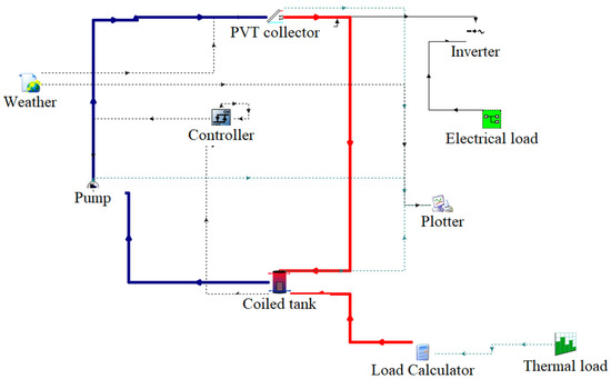 A TRNSYS model was developed to replicate the system in Figure 4, and it includes: