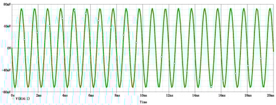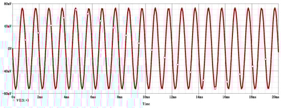 The simulation waveform of Figure 11 is the positive input voltage waveform of the amplifier, and Figure 12 is the negative input voltage waveform of the amplifier. Figure 13 is the output voltage waveform. Simulations show that the input and output waveforms coincide. The upper and lower bridge arms reach balance, and the circuit realizes the function of zero adjustment. The circuit is stable, which verifies that the control strategy is feasible and realizes the automatic zero adjustment of the measurement circuit in this paper.