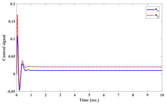 where the constant value and the eigenvalue . Therefore, is achieved with Hence, the sliding motion of system (15) is asymptotically stable. □