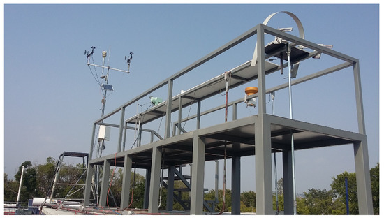 We use data of a 1.7 kW photo voltaic solar system (PVSS) and from a meteorological station (the ESOLMET station (Figure 2)) 120 m from the PVSS (Figure 3), in the IER-UNAM (Renewable Energy Institute) in Temixco, Morelos, México. Latitude: 18°50′25.62′′ N, longitude: 99°14′10.49′′ W at 1253 m above sea level.