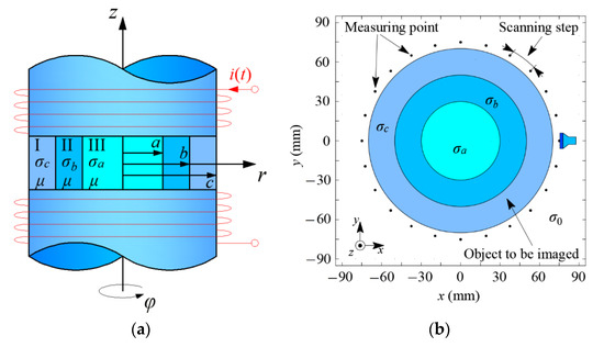 The analytical formulas, obtained for one- or two-dimensional arrangements, are widely used in electromagnetism, although they can only refer to highly idealized cases. Nevertheless, the careful examination of electromagnetic induction in low-conductivity objects is highly significant, because the results obtained affect the next steps in the tomographic process of image reconstruction. For more complex shapes, only the numerical procedures, e.g., FEM, can be applied [6,9,10,13,14,15,16,17].