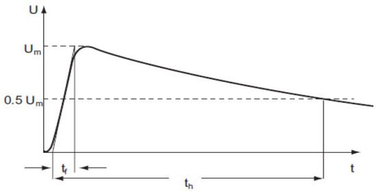 Lightning impulse voltage waveform generated on the tower/line by lightning strike [1].
