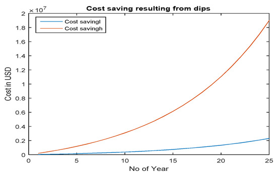 The cost savings for both the low and high-cost saving is shown in Figure 12 and is based in USD. An escalation rate of 10% per annum is assumed in both cases.