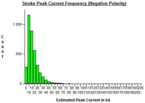 Figure 18 and Figure 19 illustrate the lightning stroke pattern in terms of value and magnitude for an 88 kV, 49 km overhead transmission line [14].