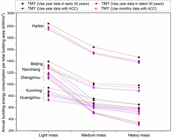 The impact of TMY considering ACC on building energy consumption.