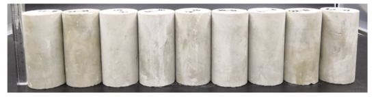 | Test | Specimen Number | σ3/MPa | D/mm | H/mm | m/g | ρ/g·cm−3 | ω/% | K/mD |