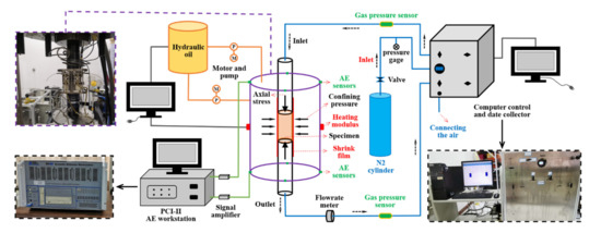 - Butt, S. Development of an apparatus to study the gas permeability and acoustic emission characteristics of an outburst-prone sandstone as a function of stress. Int. J. Rock Mech. Min. Sci. 1999, 36, 1079–1085. [Google Scholar] [CrossRef]