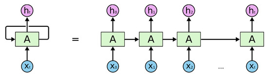 A recurrent neural network (RNN) is a neural network model with memory function that can discover the interrelationships between samples. It is especially used to process data with sequential characteristics. Unlike other network structures, an RNN introduces the idea of self-loop, which can input the output of the previous and next samples into the model for operation (Figure 1). The feature information processed by the model contains not only the information of the sequence data before the current sample, but also the information of the current sample itself. However, an RNN cannot effectively deal with long-term dependency problems (neurons that are far away in the hidden layer) because in the process of using the stochastic gradient descent method to train the RNN, the partial derivative of the loss function to the weight matrix will tend toward zero or infinity as the number of input sequence samples increases. This will bring problems of gradient vanishing or gradient exploding, limiting its wide application.