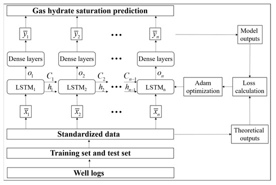 The analysis of the cores in the Shenhu area showed that the gas hydrate-bearing sediments consisted of silt (70%), sand (<10%), and clays (15%–30%) [31]. Because the well logs of gas hydrate-bearing sediments were the comprehensive responses of lithology and gas hydrates, the log characteristics of gas hydrate-bearing sediments, with varying lithologies, were different. Therefore, the LSTM network trained by well logs is only suitable for gas hydrate saturation predictions of gas hydrate-bearing sediments with small lithological differences, such as adjacent sites in the same exploration area. For sites that are further apart, or located in other exploration areas, the predictions may have large errors.