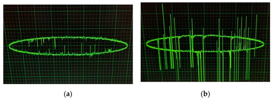 Waveforms of PD pulses at 5.5 kV applied voltage: (a) Paper impregnated to sNF; (b) Paper impregnated to iNF.
