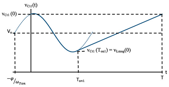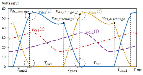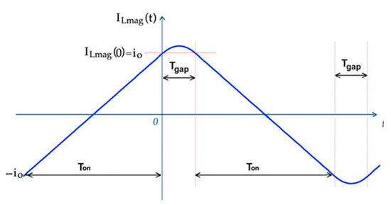 After, a numerical solution for the exact value of the duration of the gap state to guarantee the ZVS condition can be obtained from Equation (45). Once the value of Tgap is obtained, as the period has a fixed value, the value of Ton must be recalculated. If necessary, a new iteration is performed with these new values of Ton and Tgap.