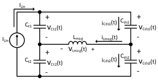 The condition to guarantee the zero-voltage commutation of the transistors is obtained by integration with Equation (37):