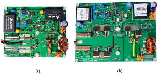 A breadboard was implemented, working at a switching frequency of 1 MHz, input voltage of 50 V, output voltage of 6 V, and output power of 150 W. The transformer turns ratio, n (50), was four with an output current of 25 A. Following the design procedure, the on time was initially fixed to 350 ns and the gap time to 150 ns. To validate the benefits of using GaN HEMTs up to 1 MHz, we implemented another breadboard using a silicon MOSFET working at 100 kHz.