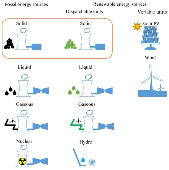 Classified energy sources of an electric system. The focus of this work is in the orange rectangle.