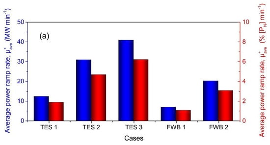 Along the same lines, fast ramping rates beyond the design point were also simulated in []. A coal-fired power plant was modeled with ClaRa, a free open-source power-plant library in Modelica®/Dymola language. Additionally, the plant control system was incorporated into the model. A heat storage system was modeled as a flexibility option and the permissible load change rate of 2%/min was simulated. Two extra ramping rates were simulated as off-design features, viz. 4%/min and 6%/min load change rates. These extreme ramping rates proved feasible under the heat-system integration.