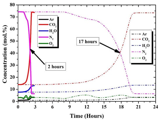 Comparison of primary gas components for different switching times (2 h and 17 h) from air mode to oxy mode using the similar control strategy; Reprint with permission []; 2014, Elsevier.