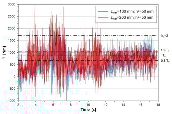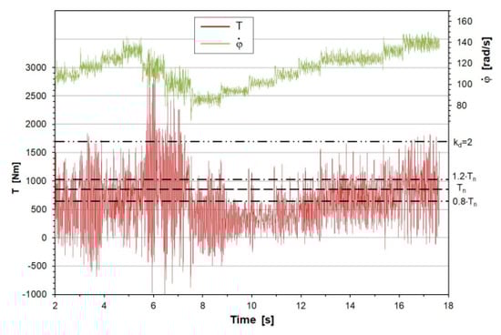 kd, which is defined as the ratio of the peak value of dynamic load in the considered time interval (rotation period of the cutting heads) to the nominal value of the motor torque:
