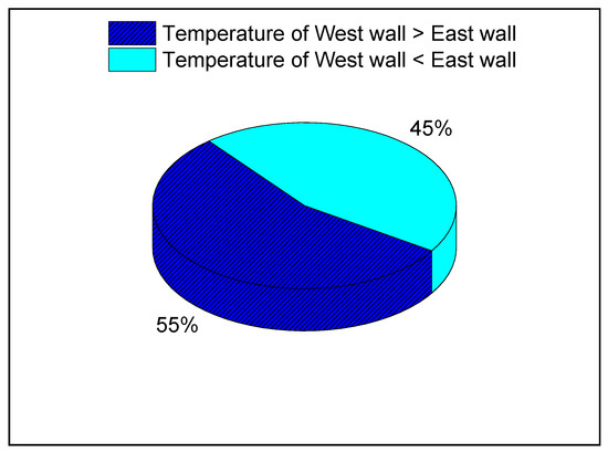 Percentage in comparison of temperatures between west wall and east wall.