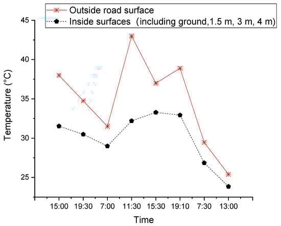 3.7. Average Surface Temperatures Inside and Outside the Lane