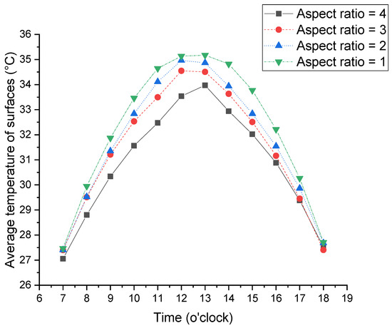 Variation of the hourly average temperature under different aspect ratios during the day.