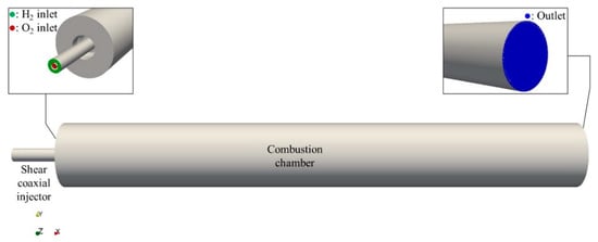 - Jian, D.; Biao, C.G.; Yang, Z.; NanJia, Y. Experimental and numerical investigation of combustion characteristics on GO2/GH2 shear coaxial injector. Aerosp. Sci. Technol. 2018, 77, 725–732. [Google Scholar]