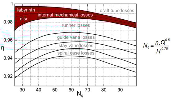 - Kurokawa, J.; Toyokura, T. Axial Thrust, Disk Friction Torque and Leakage Loss of Radial Flow Turbomachinery. In Proceedings of the International Conference on Design and Operation of Pumps and Turbines, Glasgow, UK, 1–3 September 1976. [Google Scholar]