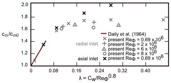| throughflow Reynolds number, flow rate coefficient, (−) | |
