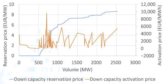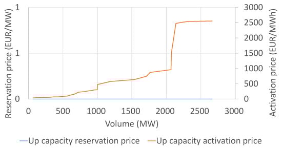 Energy prices are used in the second stage in real-time when the TSO activates the accepted reserve providers. It arranges energy price–capacity volume pairs in an ascending order by price and all the bids up to total required energy are activated.