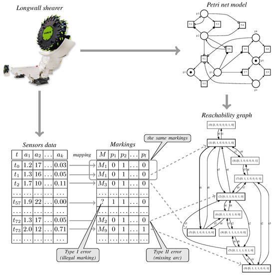 Such an analysis can reveal two types of errors. Type I error means a situation where we cannot assign a legal model marking to the given log record. Type II error denotes a situation where we found two different consecutive markings that are not connected by an arc in the reachability graph. Regardless of the type of error, its occurrence indicates the unusual behaviour of the shearer and is a signal for a detailed analysis of such a situation.