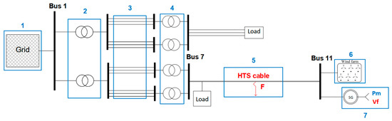 - Jipping, J.; Mansoldo, A.; Wakefield, C. The impact of HTS cables on power flow distribution and short-circuit currents within a meshed network. In Proceedings of the 2001 IEEE/PES Transmission and Distribution Conference and Exposition, Developing New Perspectives (Cat. No.01CH37294), Atlanta, GA, USA, 2 November 2002; pp. 736–741. [Google Scholar] [CrossRef]