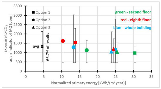 Figure 11 summarizes the results, presenting a comparison of exposure to CO2 concentrations vs. normalized primary energy.