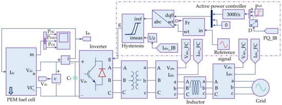 Schematic diagram of the proton exchange membrane fuel cell (PEMFC) connected to a grid.