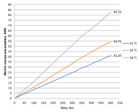 The average electric energy consumed at each temperature’s level.