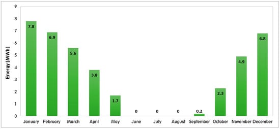 - Heat pumpThe user is required to specify the operating mode of the heat pump, the annual operative period, and its initial COP. From these data, GES-CAL defines the final power of the heat pump included in the system. In the installation here analyzed, the operative period will be 2400 h/year and an initial heat pump COP of 4 will be considered.