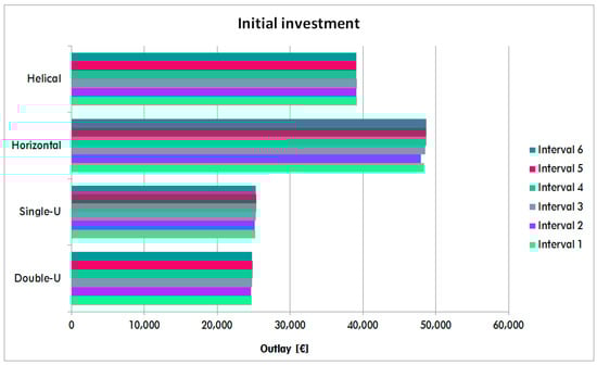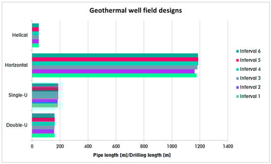 - The geothermal designs performed by GES-CAL software for all the ground thermal conductivities showed very little differences among them (when comparing the same type of geothermal system, as can be seen in Figure 13). This fact implies that all the designs demand similar initial investments for the same kind of ground heat exchanger considered.