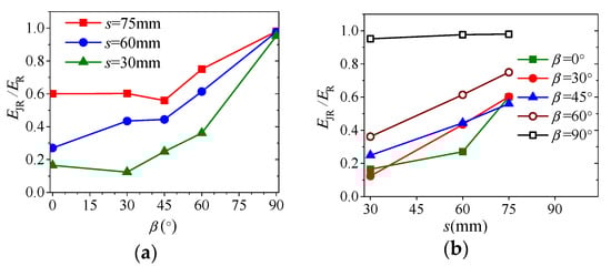 The normalized deformability modulus versus the two joint geometrical parameters: (a) EJR/ER vs. β and (b) EJR/ER vs. s.