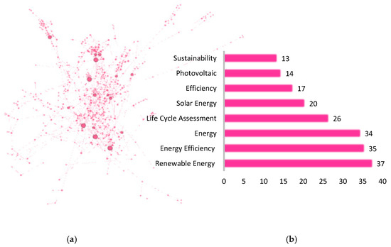 The documents of this community deal with the growing concerns of global change with the greenhouse effect emissions and the increasing demand of electric energy production. The most respectful alternative to both issues is using renewable energies. This community is made up of 1245 documents and is the second largest community, represented by 12.62% of the documents published (Figure 13a), of which the following documents stand out due to their links: