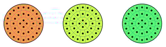 The improved method requires using filaments to represent the neighboring wires. The more filaments used, the higher accuracy obtained, but also the more time required in computations. In this section, the effect of filament number is tested. The wires are divided into sectors of similar areas. Figure 11 shows the tested discretization variants.