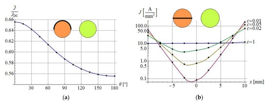 The above assumptions allow us to use 2D calculations in the cross-section of the configuration. Due to the default assumption of linearity, the current density in wire can be expressed as follows: