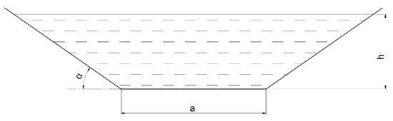 where: h—filling of the trough [m], b—width of the trough bottom [m], m—cotangent of inclination angle α[-] (α—the slope of the river trough)
