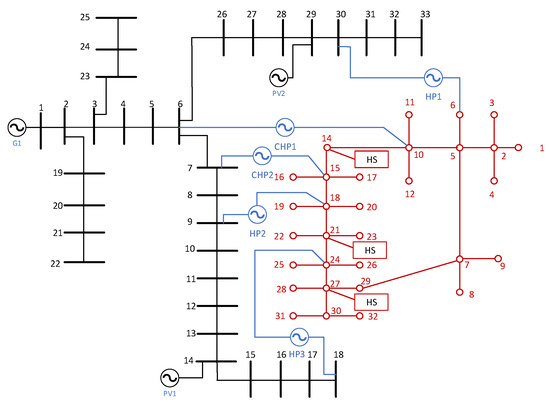 The details of the integrated system would be discussed in this subsection. As is mentioned in this paper, the integrated system consists of two sub-network system: the PDN and DHN. The paradigm of the system is illustrated in Figure 1.