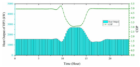 To quantify the utilization efficiency of the heat pump, COP is defined as the ratio of heat production to electricity consumption. Previous models treat the COP of heat pumps as a constant value. For example, COP = 4 means that 1 unit of electricity could generate 4 units of heat. In fact, as the heat demand increases, the COP would decline. This means the economic efficiency of heat pumps is decreasing as their demand grows.