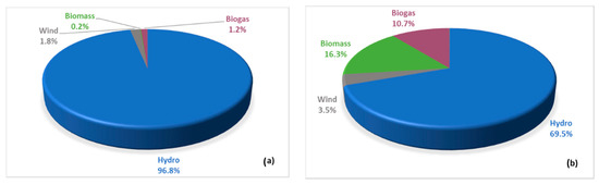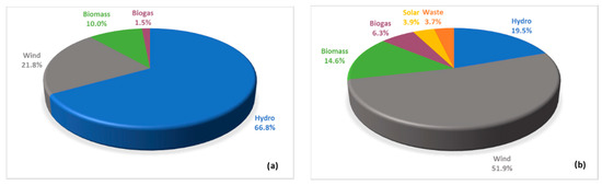 The distribution of electricity generation from different renewable energy sources in Latvia: (a) 2008 and (b) 2018 [31].