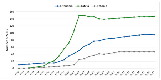 Small hydropower was rediscovered in Lithuania, Latvia, and Estonia after 1990 when all three Baltic States regained independence. Many old SHP plants and watermill sites were rebuilt and began to produce electricity once again. The growth in the number of SHP plants in the Baltic States from 1990 is presented in Figure 5.
