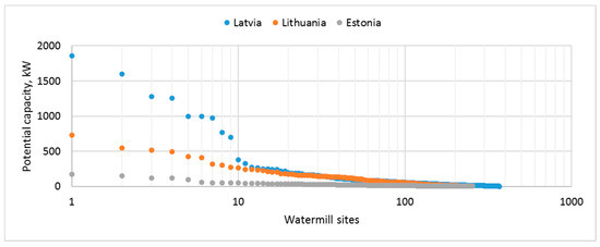 Novelty and originality of this study follow the recommendations of the European Commission first to upgrade existing hydropower plants or use existing in-stream structures for hydropower development. This work has a detailed focus on the most common existing in-stream structures in the Baltic States—historic and currently nonpowered micro-hydro sites. It is building on the state-of-the-art applied science methods, such as a spatial analysis of the potential micro-hydro sites, based on GIS tools.