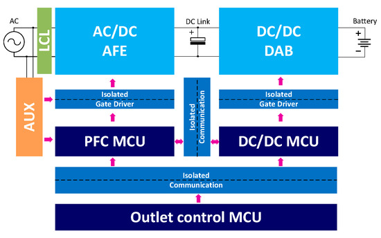 Several bidirectional battery chargers (BBCs) for V2G have been already treated in the literature to investigate viable methods to achieve a compact, efficient and inexpensive solution. In [10,11], two designs of single-phase on-board BBCs were proposed, aiming to show the feasibility of reactive power support to the utility grid. In particular, [11] deals with the advantage of using wide band-gap semiconductor devices at high frequencies to reduce the current ripple by implementing both hardware and control solutions, similar to those adopted in converters for fuel cell power units [12]. In [13], a simple and functional BBC topology for stationary application was introduced. This topology was specifically designed to enhance the capabilities of a joint operation with an energy management system exploiting a storage stage in a residential environment. A literature analysis highlighted the fact that a key issue is to design and test a suitable control strategy. More specifically, the evaluation of the modulation, as well as of some features (e.g., current ripple and load step response), requires proper testing of the control strategy in dynamic conditions on small-time scales. On the other hand, appropriate long-timescale tests to evaluate the energy management capabilities of BBCs must be also be performed. In some works [10,11,12,13,14], the development of a feasible converter model was needed to fulfil the specifications through a proper system design, optimizing the structure of the control strategy as well as the correct setting of the parameters for the controllers.