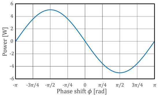 The phase-shift () is positive when the power flows from the grid to the battery and negative when the it flows in the opposite direction. The relation between the phase-shift and the delivered power is given by Equation (12):