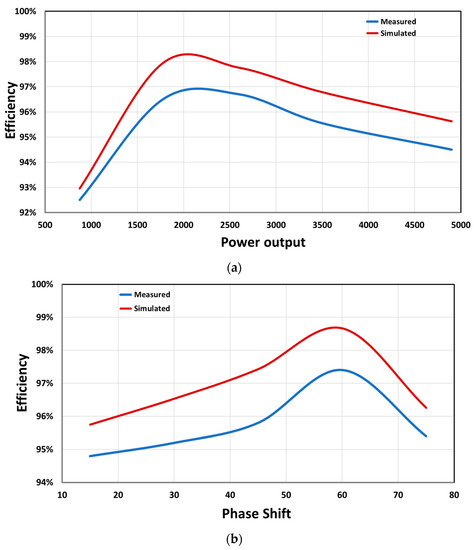 Efficiency vs. (a) power output and vs. (b) phase shift.